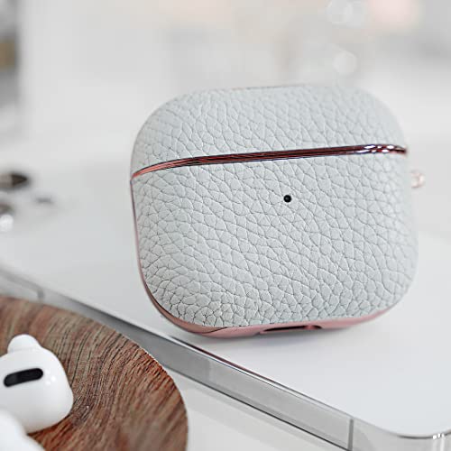 GAZE - جراب حماية جلد لسماعات ايربودز الجيل الثالث متوافق مع سماعات آبل ايربودز 3 من جيز - رمادي فاتح
