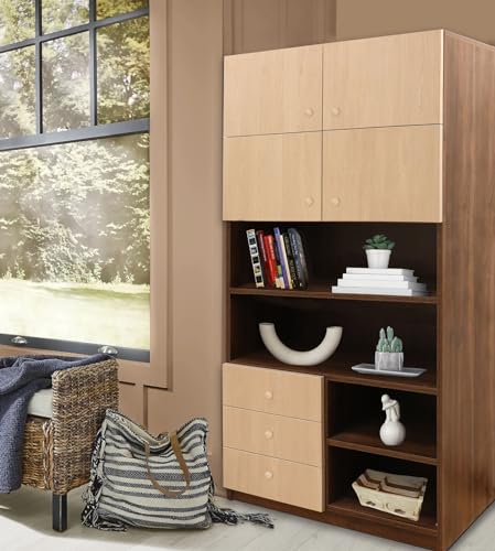 GB Furniture - خزانة تخزين خشبية مميزة، بني