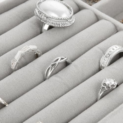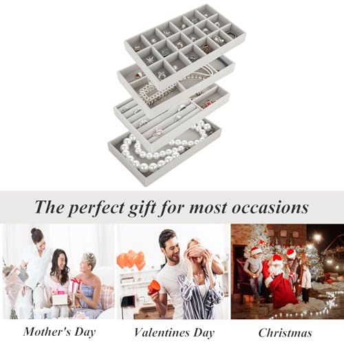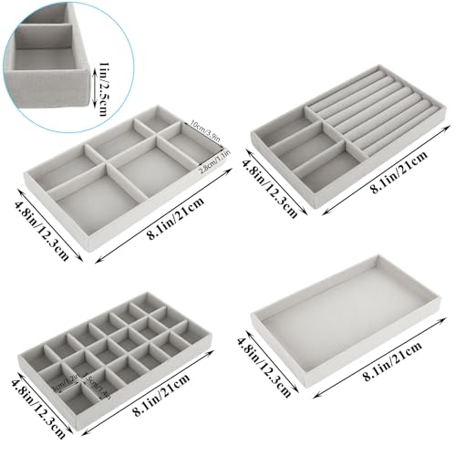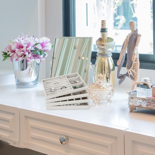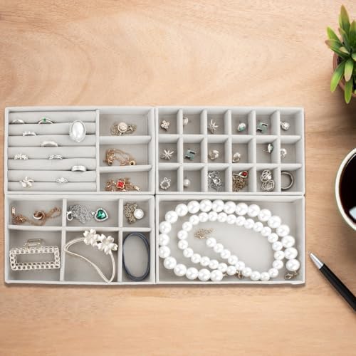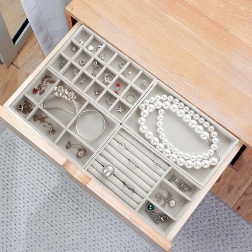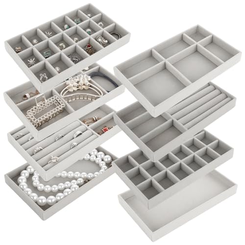 GBACHOOSE - مجموعة صواني تنظيم مجوهرات قابلة للتكديس، صواني مجوهرات قطيفة لتنظيم الأدراج، منظم أدراج للحلقان والسلاسل والأساور والخواتم من جيباتشووز، 8 قطع (لون رمادي)