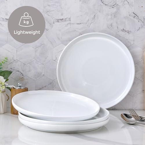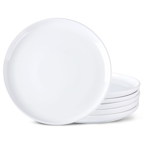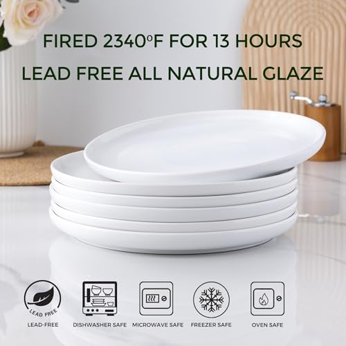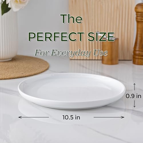GBhome - جي بي هوم مجموعة اطباق عشاء من السيراميك مكونة 6 قطع حجرية دائرية كبيرة مقاس 10.5 انش للسلطة والبيتزا وشرائح اللحم والبوفيه عميقة مقاومة للخدش امنة للاستخدام في الميكروويف والفرن. خزف حجري أبيض