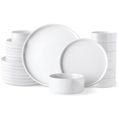 - محتويات العبوة: هذه المجموعة تتضمن 24 قطعة، منها 8 أطباق عشاء بقطر 26 سم، و8 أطباق مقبلات/وجبات خفيفة/سلطة بقطر 20.3 سم، و8 أطباق عميقة للشوربة/الحبوب بسعة حوالي 710 مل. نؤكد لك أن كل منتج قد خضع لفحص شامل لضمان وصوله بأمان دون أي كسر. يتم تعبئة كل مجموعة وفحصها بدقة لضمان وصولها سليمة.