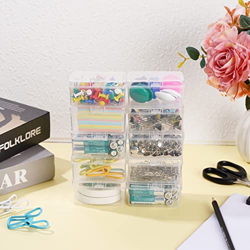 - تصميم مفيد: يتميز كل صندوق شفاف بغطاء مفصلي لمنع الغبار والأوساخ من تلويث أغراضك. كما يمنع التصميم الآمن الأشياء من السقوط، مما يجعل من السهل حمل الخرز الصغير أو المجوهرات في أي مكان.