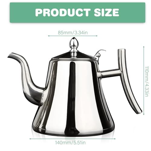 - صناعة ممتازة: فولاذ مقاوم للصدأ عالي الجودة يعد الخيار الأفضل للغلاية. المادة متينة للغاية ومقاومة للصدأ. لذلك، يمكنك الاستمتاع بإبريق الشاي المصنوع من فولاذ مقاوم للصدأ لسنوات عديدة.