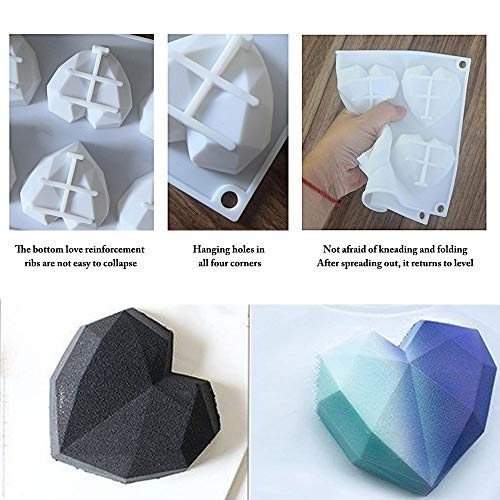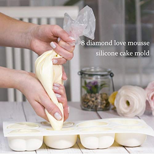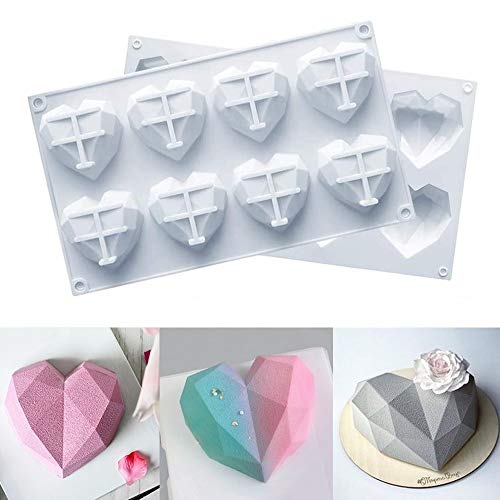 Gbrand - 8 قوالب قلب مجوفة ثلاثية الأبعاد ، قطعة واحدة من قوالب الكيك ، قوالب شوكولاتة ثلاثية الأبعاد على شكل قلب ماسي ، قوالب فرن سيليكون صديقة للبيئة ، لطاولة خبز موس والحلوى ، وحفلات الزفاف ، وأدوات تزيين D