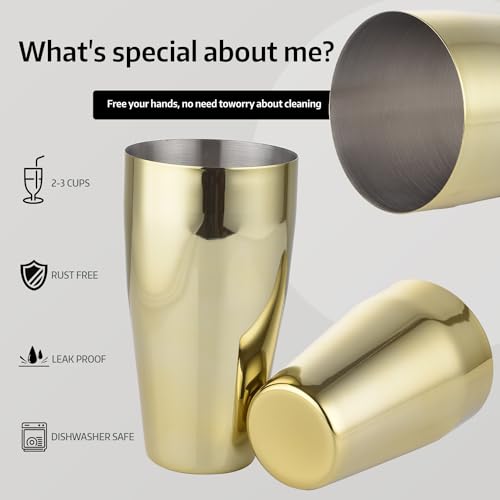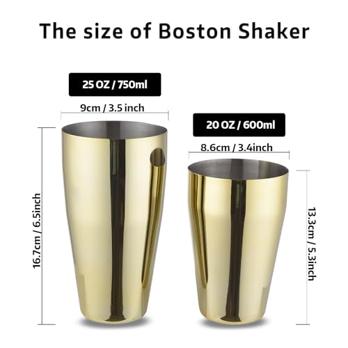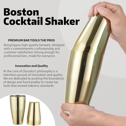 Gbuxska - مجموعة شيكر بوسطن من جبوكسكا، 20 اونصة و25 اونصة، شاكر مارتيني من الستانلس ستيل، مناسبة لسيناريوهات البارات لصنع الكوكتيلات - ذهبي