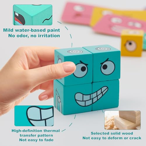 GD HUA - مكعب سحري ثلاثي الأبعاد متغير الوجوه، أحجية مكعبات تعبيرات خشبية، أحجية مكعبات خشبية للتعبيرات للأطفال من سن 3 سنوات، ألعاب أحجية تفاعلية بمكعبات خشبية من جي دي هوا