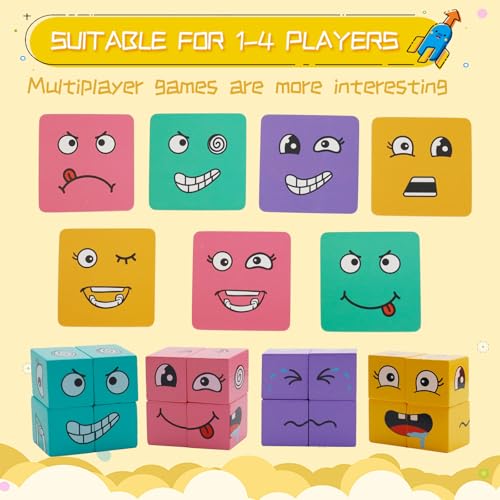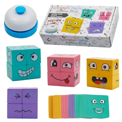 - مكعب سحري متغير الوجوه هذه الأحجية الخشبية للتعبيرات مناسبة للأعمار من 3 سنوات فما فوق. تتضمن 16 مكعب بناء مربع مطبوع، 72 بطاقة مهام وتأتي مع جرس. هذه لعبة تعليمية ممتعة ومليئة بالتحديات تتيح لـ 1-4 أشخاص اللعب في نفس الوقت.