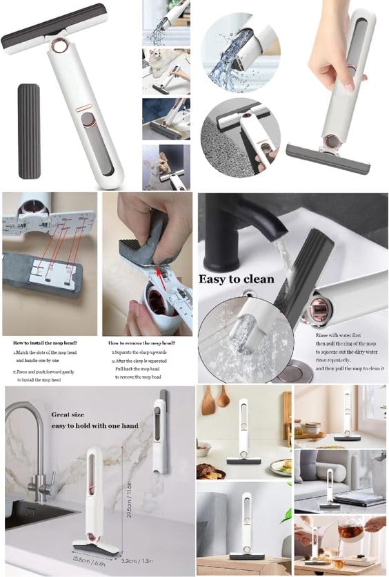 Spaceshoop - مساحة موب صغيرة محمولة ذاتية العصر من جي دي ار، مساحة تنظيف باسفنجة ماصة قوية وأوتوماتيكية يمكن استخدامها بدون اليدين مناسبة لحوض الغسيل والبلوعة والحمام وزجاج السيارة والمطبخ