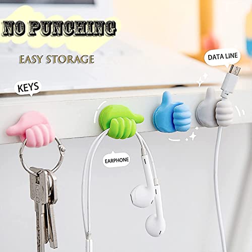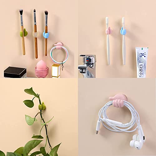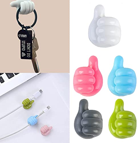 Geananao - مجموعة خطافات حائط بتصميم إبهام للتعليق من جياناناو ذاتية اللصق السيليكون متعددة الوظائف لتعليق كابلات الشحن ومنشفة المطبخ والحمام والتواليت 5 قطع خشب معدن متعدد الألوان