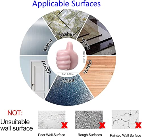 - الاستخدامات: خطافات الإبهام مناسبة فقط للأسطح الملساء مثل الخشب والرخام والبلاط والمعدن والزجاج وما إلى ذلك. يرجى تنظيف الحائط قبل التركيب. (غير مناسب للجدران المصنوعة من الحجر الجيري أو الجدران الورقية أو المطلية أو الأسطح غير المستوية.