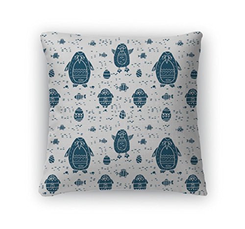 Gear New - وسادة مربعة بنمط مرح بسحّاب مع طيور البطريق الكرتونية، بوليستر، أزرق