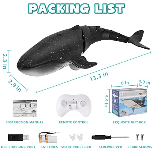 - 【بطارية ذات سعة كبيرة】تأتي لعبة الحوت بجهاز التحكم عن بعد مع بطاريتين كبيرتين قابلتين لإعادة الشحن (3.7V، 500 مللي امبير في الساعة)، ويستغرق الشحن 30 دقيقة مرة واحدة، ويمكن تشغيلها لمدة 30 دقيقة، حتى تتمكن من اللعب دون توقف.