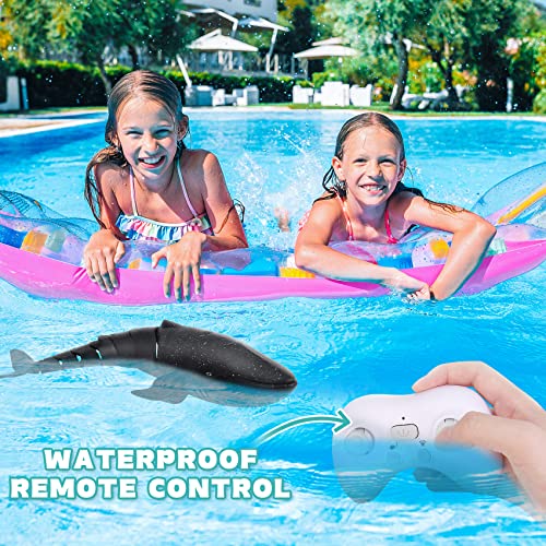 GearRoot - لعبة حوت بجهاز تحكم عن بعد بتردد 2.4 جيجا هرتز عالي المحاكاة لحمام السباحة والحمام للأولاد والبنات والأطفال من جير روت، رمادي