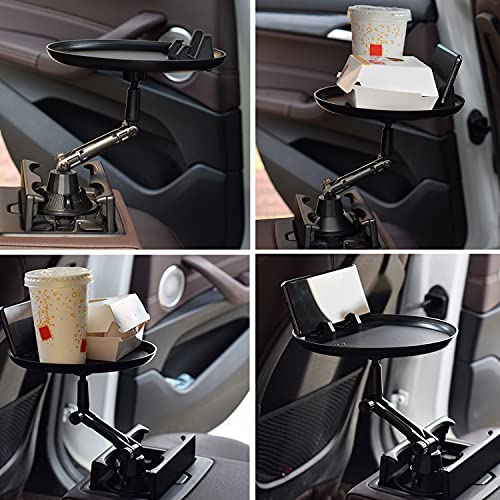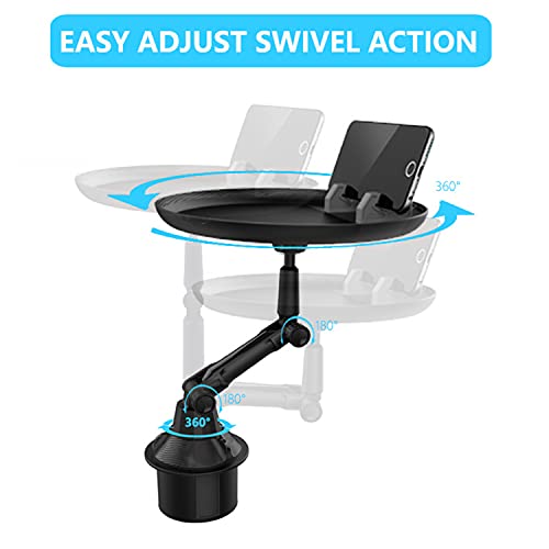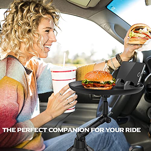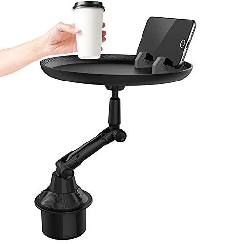 GEARVITA - حامل أكواب للسيارة مع حامل موبايل، صواني سيارة قابلة للتعديل لتناول الطعام مع ذراع دوار 360 درجة، حامل أكواب للسيارة من جيرفيتا