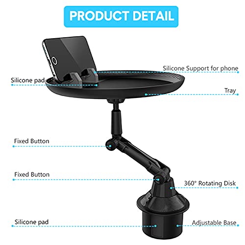 - 【موفر للمساحة متعدد الوظائف】صينية حامل أكواب السيارة هذه عبارة عن قرص بقطر 21 سم، مما يسمح لك بوضع الطعام أو الأشياء اليومية الأخرى عليها. مع وسادة مطاطية مضادة للانزلاق، فإن العناصر الموجودة على الصينية متينة للغاية ولن تسقط أو ينسكب أي شيء. يأتي أيضًا مع حامل موبايل ذكي مبطن على الصينية للاستمتاع بمقاطع الفيديو عند تناول الطعام.