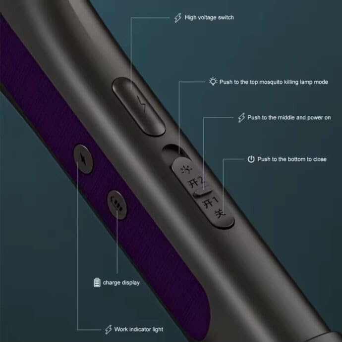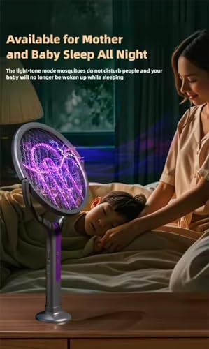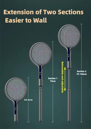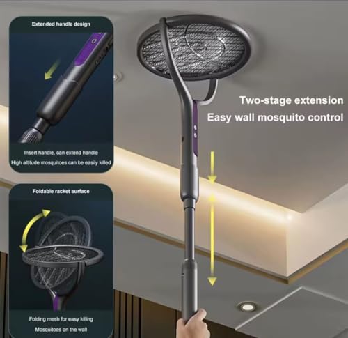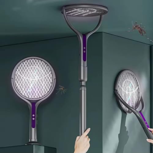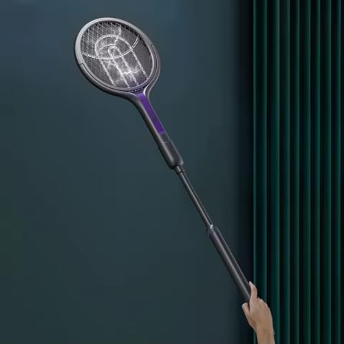 Generic - مضرب كهربائي برأس دوار من جيكو مان، مضرب صاعق حشرات قابل لاعادة الشحن، صاعق حشرات داخلي، صاعق البعوض قاتل الذباب للاستخدام الداخلي، مع وصلة تلسكوبية