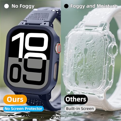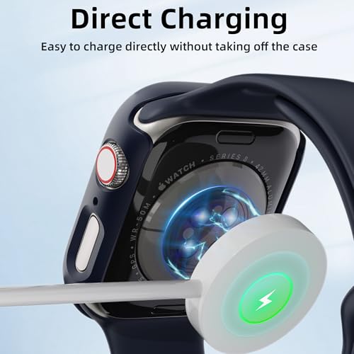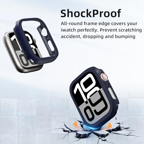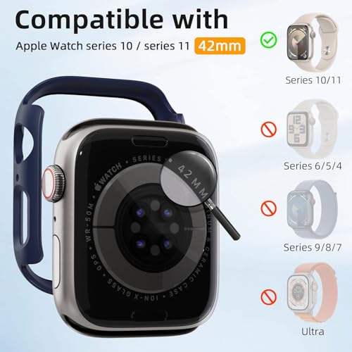 GEEDOOWIN - جراب رفيع ورقيق بإطار واقي صلب من البولي كربونات وحواف شاملة، ممتص للصدمات ومتوافق مع ساعة آبل سلسلة 10 42 ملم [بدون شاشة حماية] من جيدووين، أزرق- قطعتان