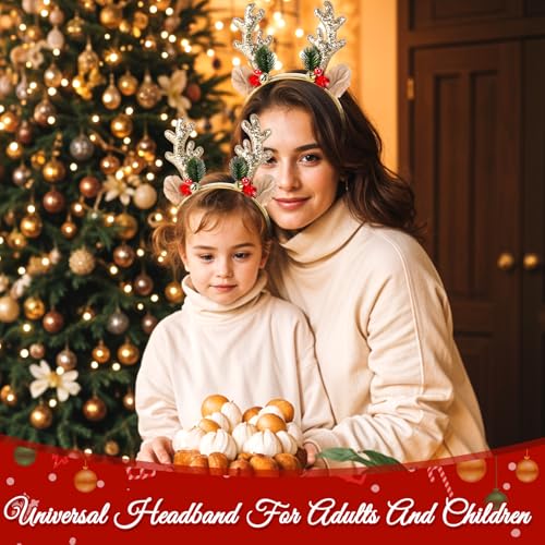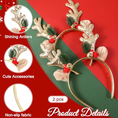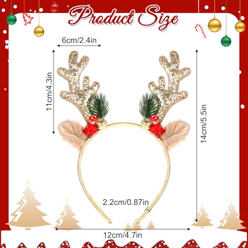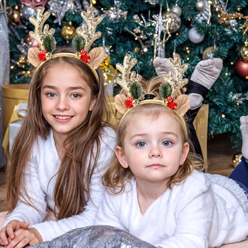 GEEHUA - أربطة للرأس للكريسماس من جيهوا، طوق رأس بقرون وعِل الكريسماس اللامعة للنساء والبنات، اكسسوارات رباطات شعر لطيفة لهدايا الحفلات ومستلزمات حفلات الكريسماس التنكرية (ذهبي)