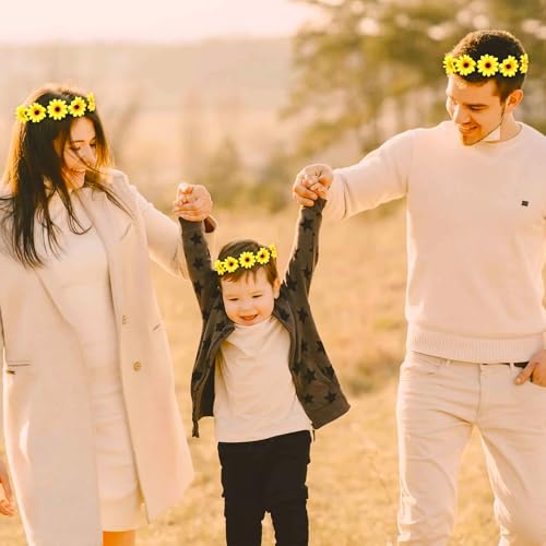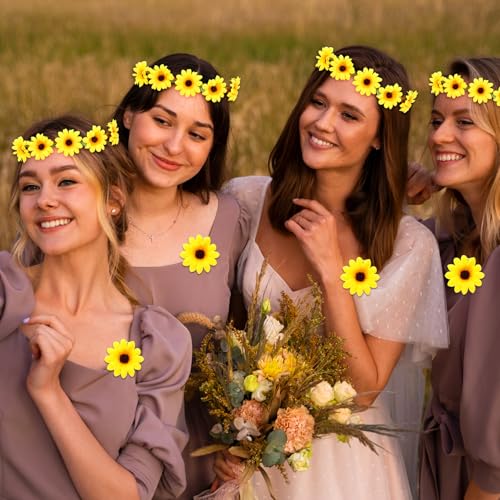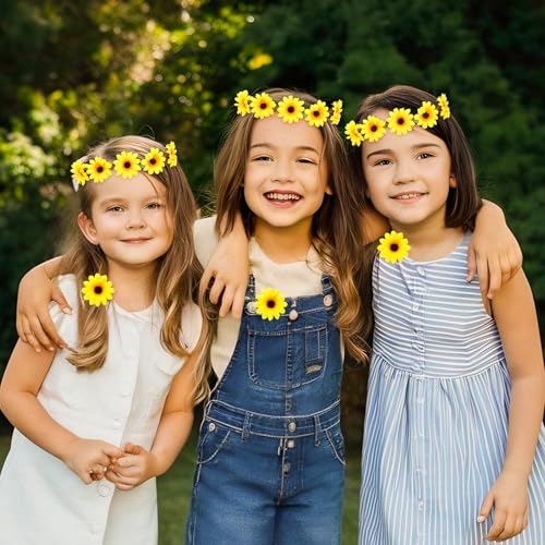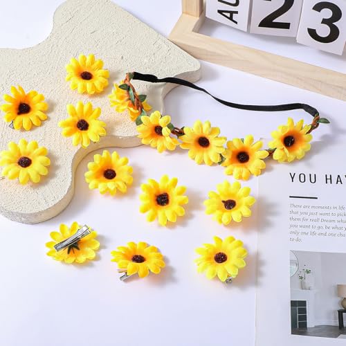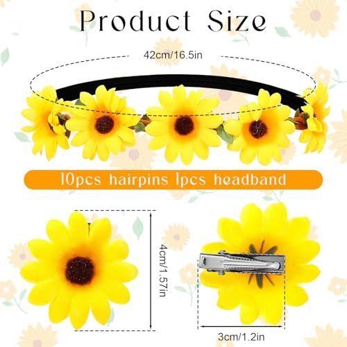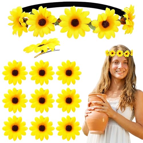 GEEHUA - اكسسوارات شعر بتصميم زهرة عباد الشمس من جيهوا، شريط راس مرن مع 10 قطع من مشابك شعر على شكل زهور، شريط راس اصفر، اكليل زهور، مشبك شعر عباد الشمس، دبابيس شعر للكرنفالات والهالوين