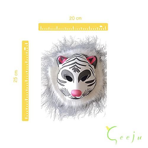 Geeju - ماسك وجه بتصميم حيوان النمر الأبيض، للأطفال والبالغين للاحتفال بالهولي وأعياد الميلاد والحفلات من جيجو