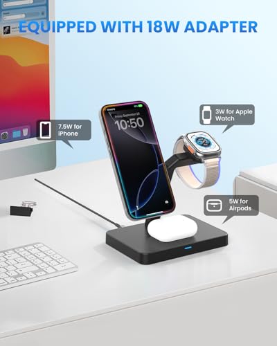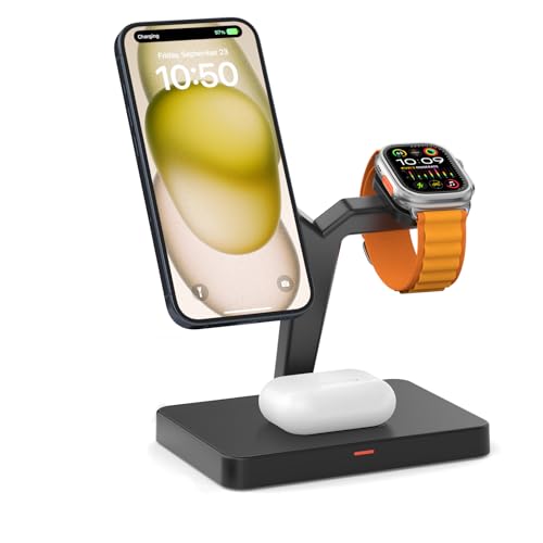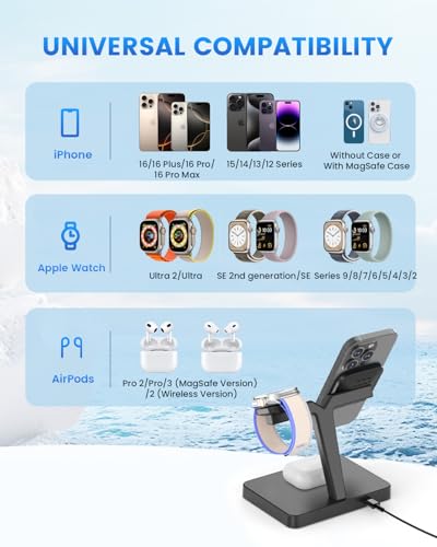 - المنزل لجميع أجهزتك: الشاحن النهائي الخاص بك هنا! يمكن لقاعدة الشحن اللاسلكية المغناطيسية شحن سلسلة ايفون 16/15/14/13/12 وساعة ابل الترا 10/9/8/7/6/5/4/3/2/اس اي، وسماعات ايربودز برو 2/برو/4/3/2 (إصدار لاسلكي)، فهي تلبي احتياجاتك. قاعدة الشحن اللاسلكية متعددة الاستخدامات ومصممة لجعل حياتك أسهل!