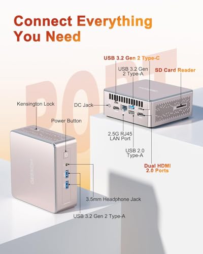 - [واي فاي 6 وبلوتوث 5.2] واي فاي 6 أسرع بثلاث مرات من واي فاي 5، لذلك لا داعي للقلق بشأن قطع الاتصال في العمل. علاوة على ذلك، يحتوي الكمبيوتر الصغير على نظام بلوتوث 5.2 مدمج يوفر تقنية اتصال لاسلكي عالية السرعة، مما يوفر تجربة انترنت أسرع للتصفح والبث.
