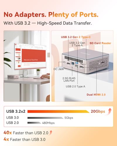 - [واي فاي 6 وبلوتوث 5.2] واي فاي 6 أسرع بثلاث مرات من واي فاي 5، لذلك لا داعي للقلق بشأن قطع الاتصال في العمل. علاوة على ذلك، يحتوي الكمبيوتر الصغير على نظام بلوتوث 5.2 مدمج يوفر تقنية اتصال لاسلكي عالية السرعة، مما يوفر تجربة انترنت أسرع للتصفح والبث.
