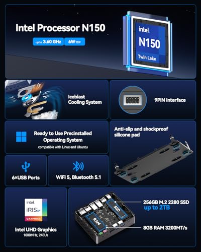 - ️【أداء قوي وفعال】يتم تشغيل الكمبيوتر الصغير جيكوم Air12 Lite بأحدث معالج انتل الجيل الثاني عشر توين ليك N150 (رباعي النواة / 4 خيوط، ذاكرة تخزين مؤقت 6 ميجابايت، حتى 3.6 جيجاهرتز)، مما يوفر أداءً أسرع بنسبة 20% من N100. مع بطاقة رسومات انتل الترا اتش دي، التي تدعم إخراج مذهل بدقة 4 كيه عند 60 هرتز، يتعامل جهاز الكمبيوتر الصغير اير 12 لايت مع كل شيء بدءًا من بث الوسائط السلس وإنتاجية المكتب إلى تحرير الصور وتصفح الويب بسهولة ملحوظة. مثالي للعمل والترفيه، نظام ويندوز خارج الصندوق ومتوافق تمامًا مع أنظمة اوبونتو ولينكس، يوفر هذا الكمبيوتر الصغير أداءً خاليًا من التباطؤ في تصميم موفر للمساحة.