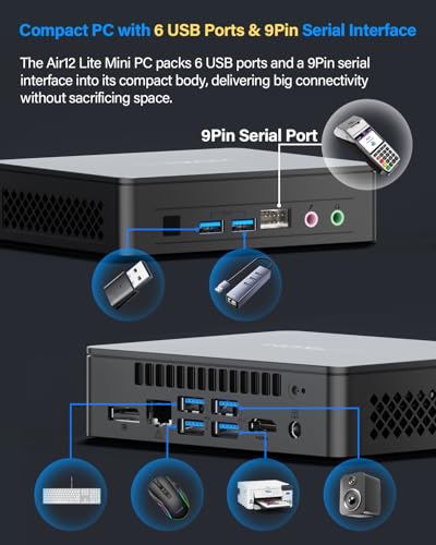- 【مصمم للمعدات الحديثة والقديمة】يحتوي الكمبيوتر الصغير جيكوم AIR 12 Lite على 6 منافذ USB لجميع الأجهزة الطرفية وواجهة تسلسلية مدمجة بـ 9 دبابيس للتوافق المباشر للتوصيل والتشغيل مع المعدات الصناعية وأنظمة نقاط البيع والأجهزة المتخصصة. يتعامل هذا الكمبيوتر القوي المدمج مع معدات المدرسة الحديثة والقديمة في نفس الوقت، وهو مثالي لأنظمة نقاط البيع وأجهزة التحكم الصناعية والمكاتب ذات المساحة المحدودة. احصل على اتصال كامل دون فوضى!
