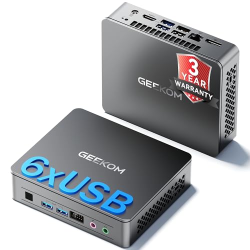 GEEKOM - جيكوم كمبيوتر مكتبي صغير اير 12 لايت (ضمان 3 سنوات)، انتل الجيل 12 توين ليك N150 (افضل من N100)، 8GB RAM 256GB SSD، شاشة مزدوجة 4K، 6 منافذ USB + سلسلة 9 دبابيس، كمبيوتر مكتبي صغير للمنزل والمكتب