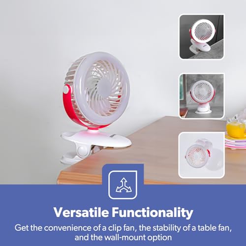 - 3. مزايا 2 في 1 - تتحول هذه المروحة بسهولة من مروحة بمشبك إلى مروحة سطح الطاولة حتى تتمكن من الاستمتاع بميزاتها على مكتبك أو من أي زاوية أخرى مفضلة في مساحتك.