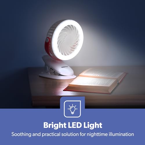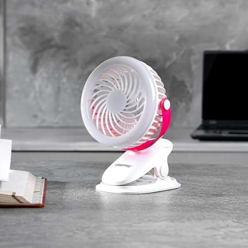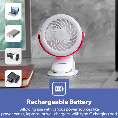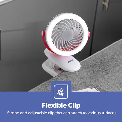 Geepas - مروحة بمشبك 2 في 1 قابلة لإعادة الشحن مع إضاءة ليد مكونة من 36 قطعة من جيباس