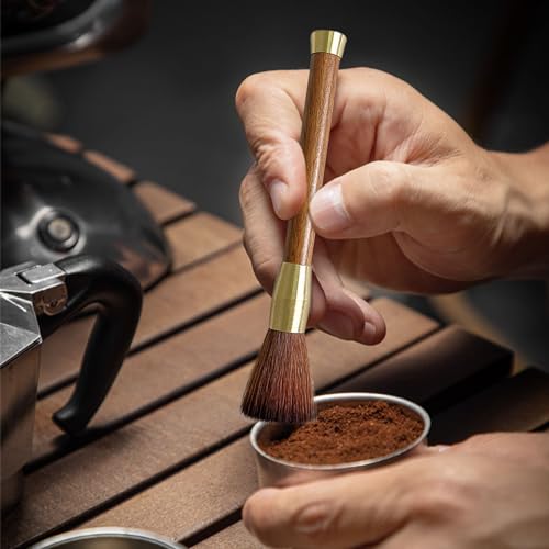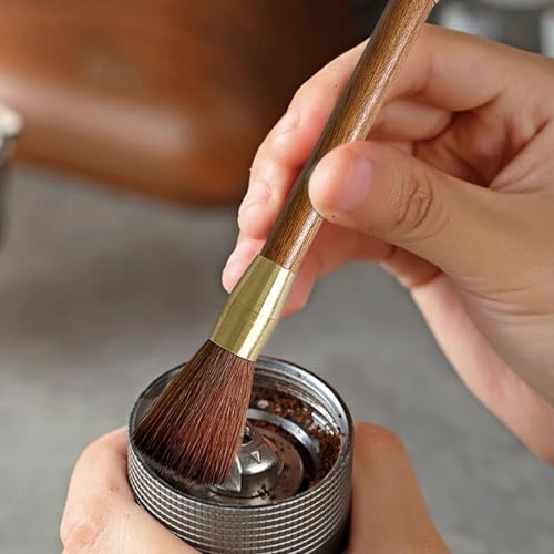 GeeRic - جييريك فرشاة تنظيف مطحنة القهوة، فرشاة مطحنة القهوة الخشبية للتنظيف، شعيرات طبيعية تحافظ على حبوب القهوة طازجة، لون بني