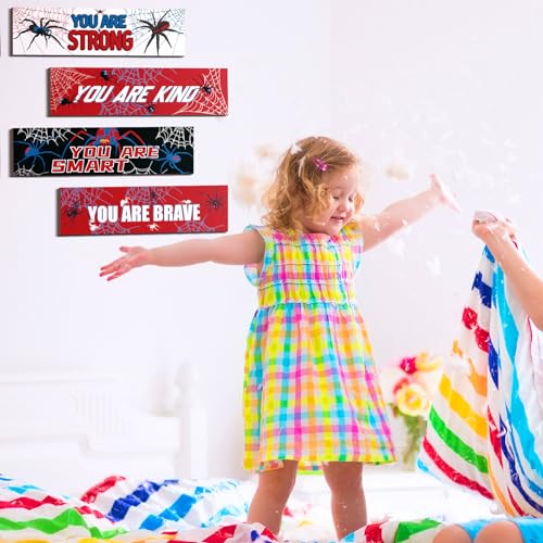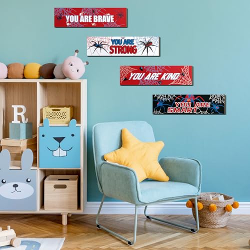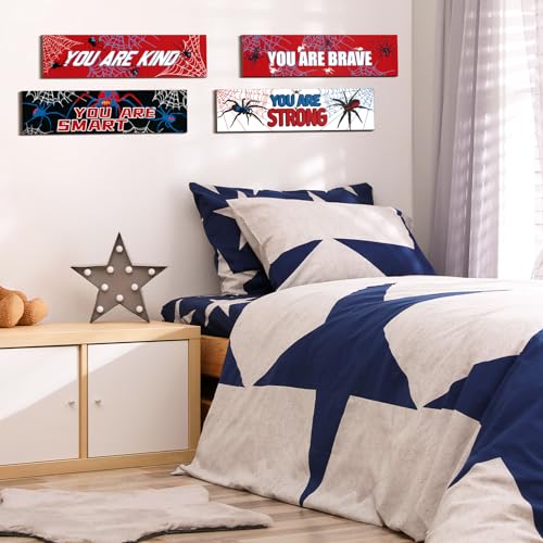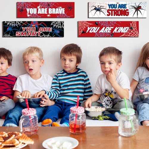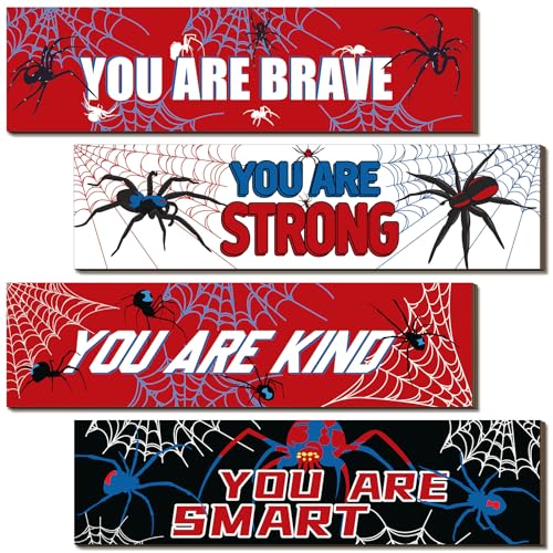 Geetery - لافتات عنكبوت ملهمة لتزيين الحائط والغرف وغرف الأطفال والأولاد والرجال والمنزل وغرفة النوم وغرفة اللعب من جيتري، 4 قطع