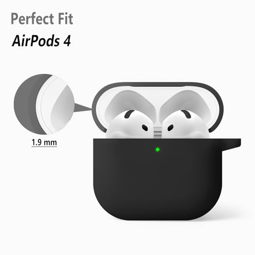 Geiomoo - جراب حماية سيليكون لسماعات ايربودز 4 من جيوميو، غطاء واقٍ مع حلقة تثبيت (أسود)