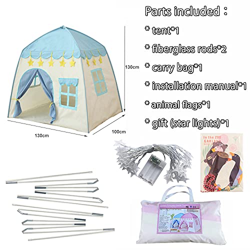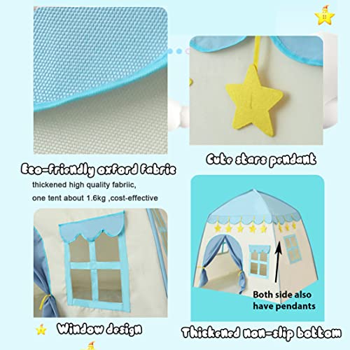 GEIwenle - خيمة لعب للأطفال، قصر للأطفال، كوخ على شكل قصر الأحلام مع شنطة حمل، قابلة للطي مع نجوم براقة، للاستخدام الداخلي والخارجي، حاصلة على شهادة EN71، أزرق