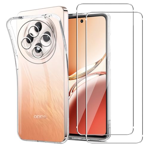 GEJEFA - جراب حماية من جيجيفا لموبايل اوبو رينو 12 اف الجيل الخامس/رينو اس الخامس مع قطعتين الزجاج المقسى السيليكون الناعم، جل بولي يوريثين مقاوم للخدش ومضاد للاصفرار، شفاف