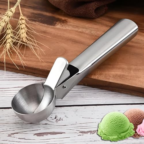 Generic - مغرفة جيلاتو - مغرفة آيس كريم من الفولاذ المقاوم للصدأ شديدة التحمل مع قبضة مريحة للمغارف، مغرفة دائرية مثالية للجيلاتو والزبادي المجمد وعجينة البسكويت