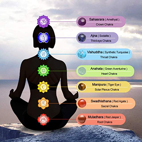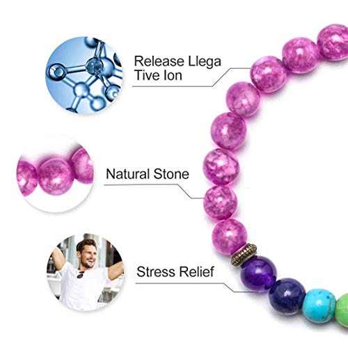 GelConnie - سوار شاكرا 7 8 ملم لليد من الحجر الطبيعي جل كوني لافا علاجي لتخفيف التوتر والقلق للارتداء عند ممارسة تمارين اليوجا للعلاج برائحة الزيوت العطرية حجر العقيق