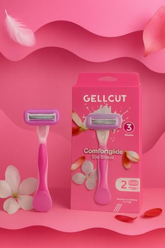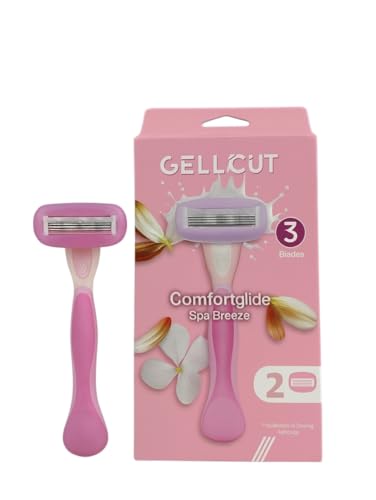 GELLCUT - ماكينة حلاقة كومفورت جلايد سبا بريز بثلاث شفرات من جلكات، 2 رؤوس غيار، لون وردي