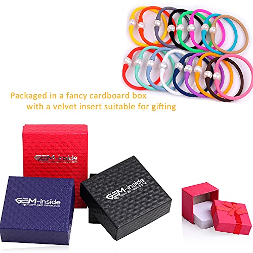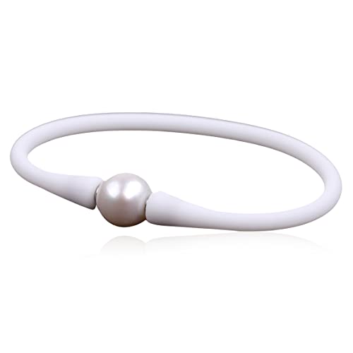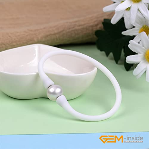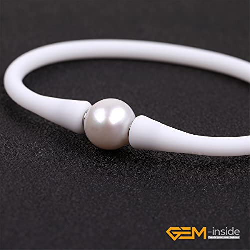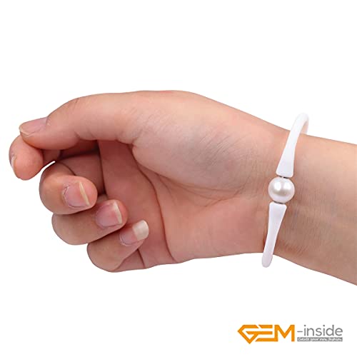 GEM-INSIDE CREATE YOUR OWN FASHION - اساور مجوهرات كبيرة من اللؤلؤ الحقيقي 11 ملم لوصيفة العروس من جيم انسايد بلون ازرق داكن قابلة للتكديس مصنوعة من مطاط السيليكون المرن واللؤلؤ المستزرع في المياه العذبة للنساء 7 انش