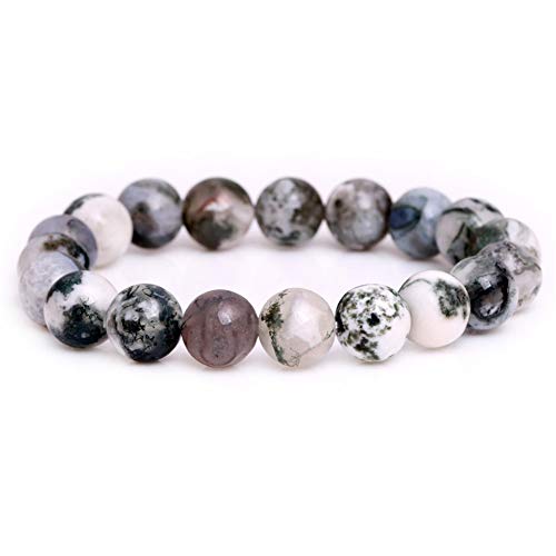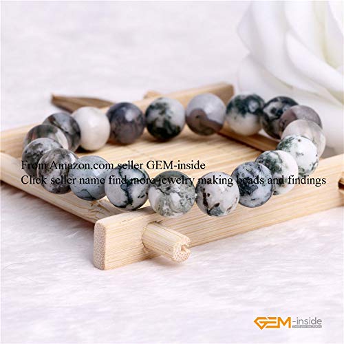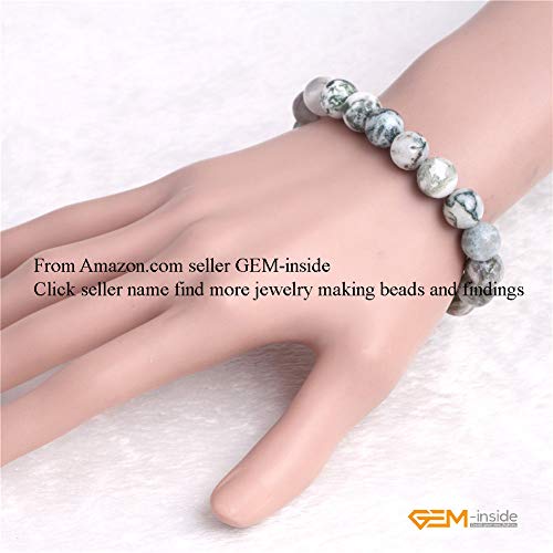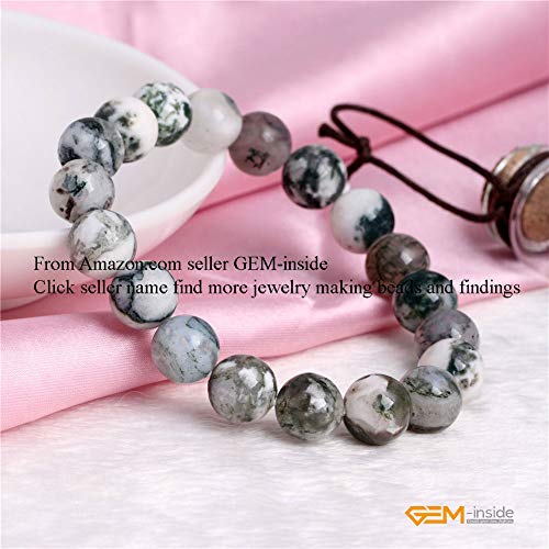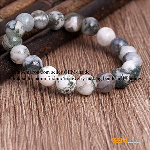 GEM-INSIDE CREATE YOUR OWN FASHION - اساور اصلية من جيم-انسايد بتصميم شجرة طحلب خضراء طبيعية حجر العقيق الكريم سوار كريستال مرن للنساء مجوهرات للجنسين 7 انش - 7.5 10 ملم هدية