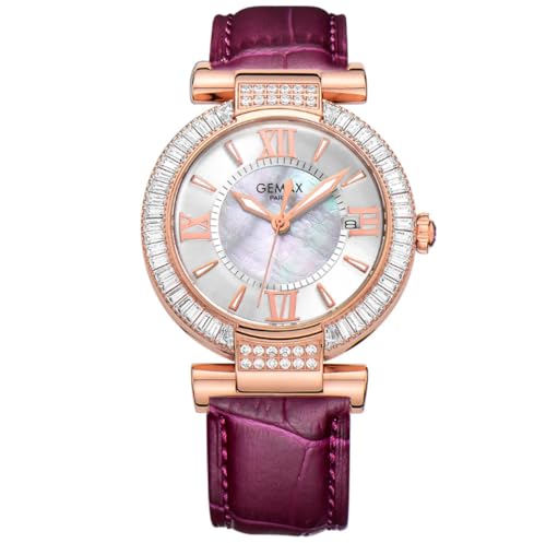 Gemax - ساعة جلد للنساء 3002P-CR-B5-DW، مقاس 34 ملم، احمر غامق، تناظري