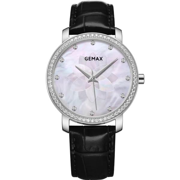 Gemax - ساعة جلد للنساء 52169-CP-B1-DW، مقاس 33 ملم، اسود، تناظري