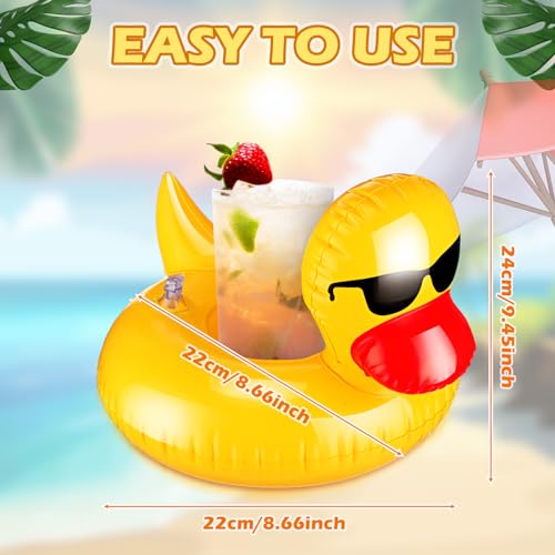 - كمية كافية للمشاركة: ادعُ أصدقائك واستمتعوا مع 24 حاملة أكواب قابلة للنفخ على شكل بطة، بأبعاد حوالي 24 × 22 × 22 سم. إنها مثالية للتجمعات حيث يرغب الجميع في أن تكون مشروباتهم قريبة منهم. يمكن لهذه العوامات استيعاب العديد من المشروبات بسهولة، مما يجعلها عنصرًا مميزًا في حفلتك القادمة.