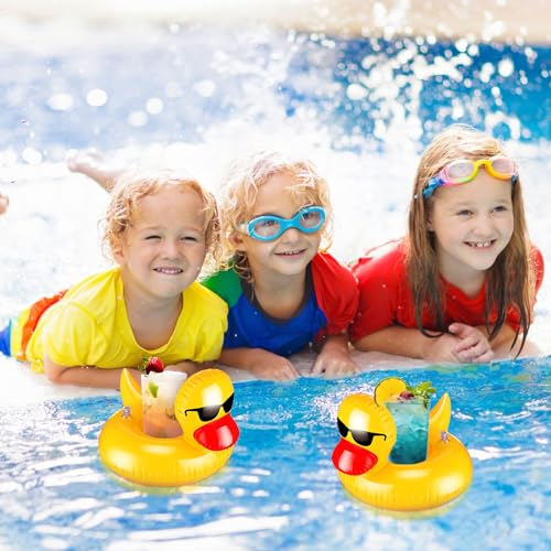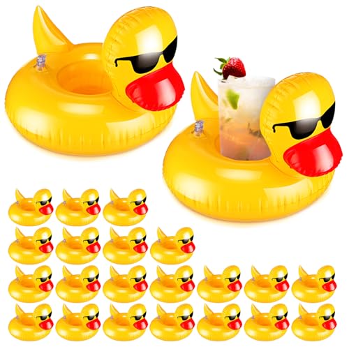 Gemscream - حاملات أكواب بشكل بطة قابلة للنفخ، خفيفة قابلة لإعادة الاستخدام، حاملة أكواب لطيفة للمشروبات، للأولاد والبنات، وحفلات الصيف وحمامات السباحة والجاكوزي، من جيمسكريم، 24 قطعة