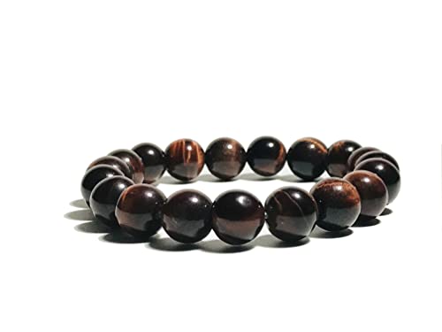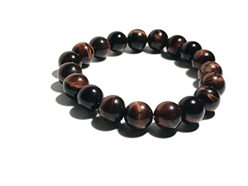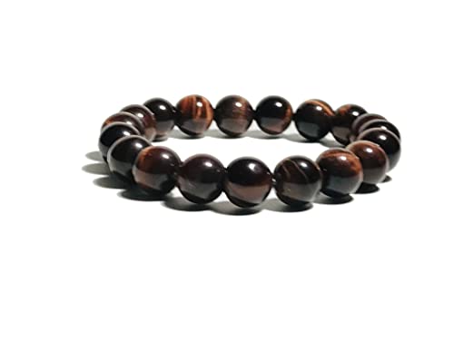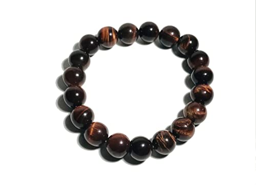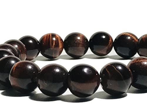 Gemsworld007 - سوار مطاطي مصنوع يدويا من حجر عين النمر الاحمر شبه الكريم مقاس 10 ملم جيمس ورلد 007 7.5 انش يوجا للتامل احجار كريمة للبالغين الجنسين للنساء