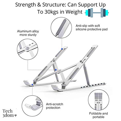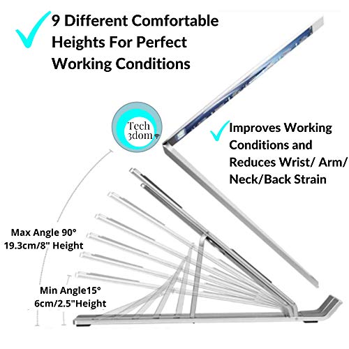 - <p>➤ <strong>حامل لاب توب 3 دوم 45- تك</strong>مع 9 ارتفاعات مختلفة مريحة (6-19.3 سم/2.5-8 بوصة/15-90 درجة)، يمكنه أن يحمل أجهزة اللاب توب/ النوت بوك للحصول على ظروف عمل مثالية لتقليل الألم/الأوجاع/الضغط من على ظهرك ورقبتك وعينيك. أنتج من قبل شركات التصنيع، وتم اختباره وفحص جودته في المملكة المتحدة. للعمل المنزلي/المكتبي والمدرسة والكلية. يمكن طيه بسهولة لأسفل بشكل مسطح، وحمله في أي مكان. شنطة حمل مجانية.</p>