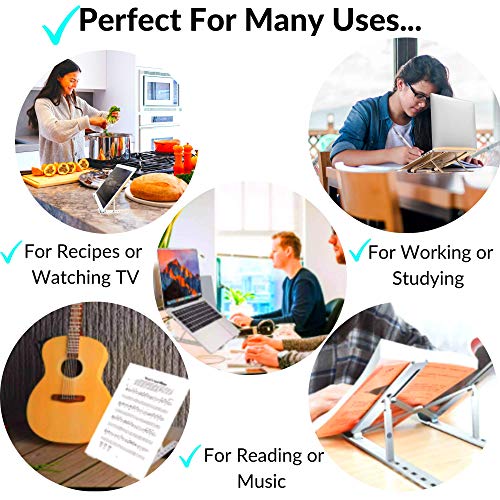 - <p>➤ الفوائد: يحسن من مستوى الراحة عند العمل على مكتبك وذلك بفضل وجود 9 زوايا ارتفاع قابلة للتعديل على حسب الحاجة. يقلل من إجهاد المعصم / الذراع / الرقبة / الظهر عن طريق رفع اللاب توب. ارفع الشاشة/كاميرا الويب لمستوى العين المثالي/للاجتماعات. </p><p>يمكن تعديله ليصلح مع كيبورد الكمبيوتر /رف الكتب/التابلت/اي-باد. العرض قابل للتعديل مع جميع الأجهزة بمقاسات تصل إلى 18 بوصة. متوافق مع أجهزة لينوفو واي باد وايسر وسامسونج وماك بوك اير/برو واسوس واتش بي وديل والكثير. ملحقات مثالية للمكتب المنزلي.</p>