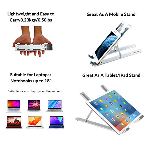 Gen 13 - حامل لاب توب لسطح المكتب تك-3 دوم من جين 13 حامل بمبرد لجميع انواع لاب توب (10-18 بوصة) وتابلت/موبايل قابل للطي ومحمول ومسامات للتهوية ومانع للانزلاق وخفيف الوزن وقابل للرفع بتسعة ارتفاعات وصديق